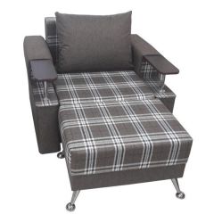 Для комфортного отдыха имеет маятниковый механизм глайдер, который выполняет классическую функцию покачивания, при этом она не проминает напольное покрытие. Кресло обтянуто мебельной тканью или искусственной кожей, каркас-дерево, боковины выполнены в виде криволинейных деталей, образующих ножки-опоры, материал боковины фанера. На боковинах имеются мягкие подлокотники.