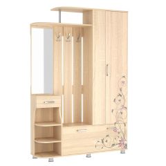 Представляет собой небольшую, компактную и функциональную прихожую. Она состоит из двух модулей – вешалки с крючками и тумбы-банкетки. Последняя включает в себя три полочки для различных вещей, ящика и мягкого сидения. Выпускается прихожая в двух цветах: корпус – ясень шимо светлый или ясень шимо темный, мягкий элемент – ткань и винилискожа серого цвета.