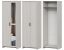 • Шкаф трехстворчатый. Шкаф комплектуется створками разной ширины. По краям створки шириной 413 мм, средняя створка — 328 мм. Шкаф разделен вертикальной перегородкой на две секции: бельевую и платяную. В левой бельевой секции шириной 418 мм располагаются 2 съемных и 1 стационарная полки. В правой платяной секции шириной 734 мм располагаются стационарная полка вверху и металлическая штанга. В комплектацию шкафа входят два зеркала 200х901 мм. которые приклеиваются на центральную створку при сборке.