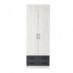 В левой части шкаф оборудован несколькими полочками для хранения белья. В правой расположена надёжная штанга для размещения одежды на плечиках.